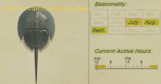 Depending on the species you want to catch, this can appear throughout the day, or a specific time, in the case of the crab it would be option 2 so you have to dive in bubble points between 9 p.m. and 4 a.m. local time. In addition to that the crab can only be found during July-September in the northern hemisphere and January-March in the southern hemisphere. If you manage to catch a horseshoe crab, you can either sell it for 2,500 bells or donate it to the new underwater section of the Blather museum.