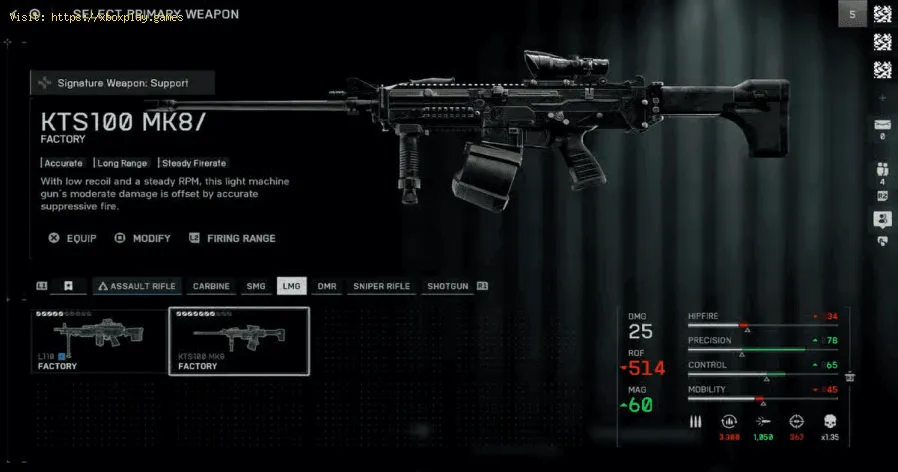 - KTS100 MK8: A highly controllable LMG with very low recoil, but its damage outputis lower than the L110, making it less effective at longer ranges.