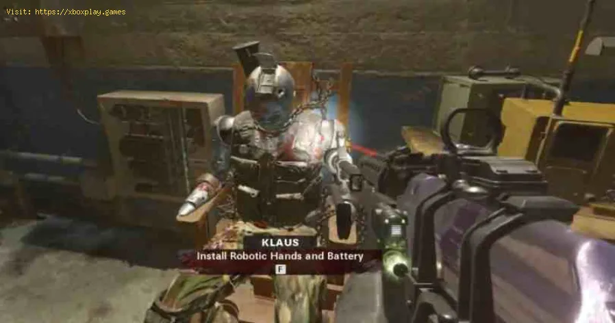 - We must go to the underground area in order to go to the "Shelter", and that is where we will see Klaus sitting in a chair, just press to install his robotic hands in addition to the battery and voila.
