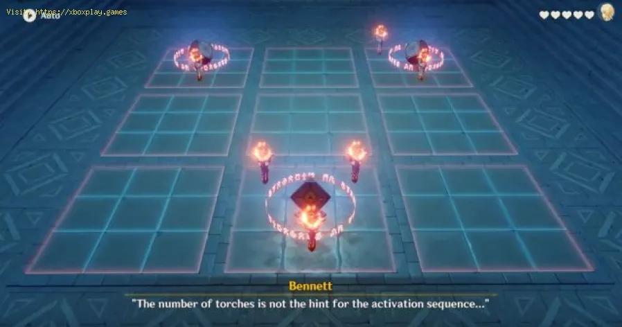 Dies ist eigentlich keine sehr komplexe Aktivität und Teil von Bennettes Endsequenz, denn obwohl die erste normalerweise einen Fehler im Dungeon darstellt, besteht die Möglichkeit, sie zufriedenstellend abzuschließen, wofür das Rätsel gelöst werden muss Der Mechanismus basiert auf den Schaltern, die sich normalerweise neben einigen Lampen auf dem Boden befinden. Dies ist eine Aktivität, die auf eine bestimmte Weise ausgeführt werden muss.