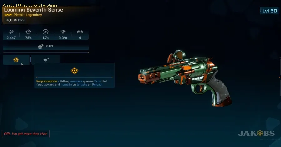 Diese Mechanik harmoniert perfekt mit dem typischerweise kleinen Magazin der Pistole (oft nur 4 Schuss) und fördert einen aggressiven Spielstil mit Schießen-Nachladen-Schießen. Als Jakobs-Waffe verfügt sie außerdem über die charakteristische Eigenschaft des Herstellers: Kritische Treffer lassen zusätzliche Kugeln auf nahe Gegner abprallen, was sie zu einem Monster für die Beseitigung von Gruppen macht.