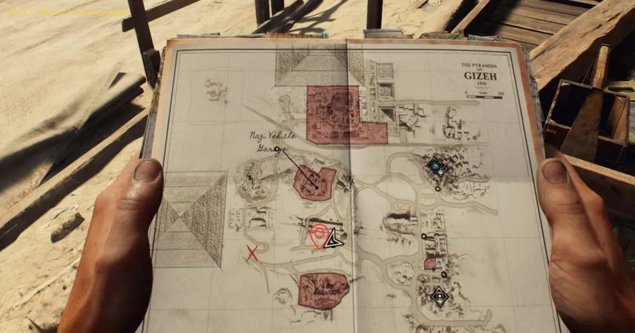 In Gizeh, in der Nähe der Ausgrabungsstätte von Khentkawes,gibt es einen verschlossenen Sarg mit ägyptischen Ziffern. Um den Ortherum, den Sie zuvor besucht haben, befindet sich eine Hütte, in der der Sarg aufbewahrt wird. Innerhalb der Hütte gibt es jedoch einen Raum,der abgesperrt ist und den Sie von innen nicht betreten können. Siemüssen herausfinden, wie Sie dorthin gelangen. Die Truhe ist ungefähr so leicht zu erreichen.