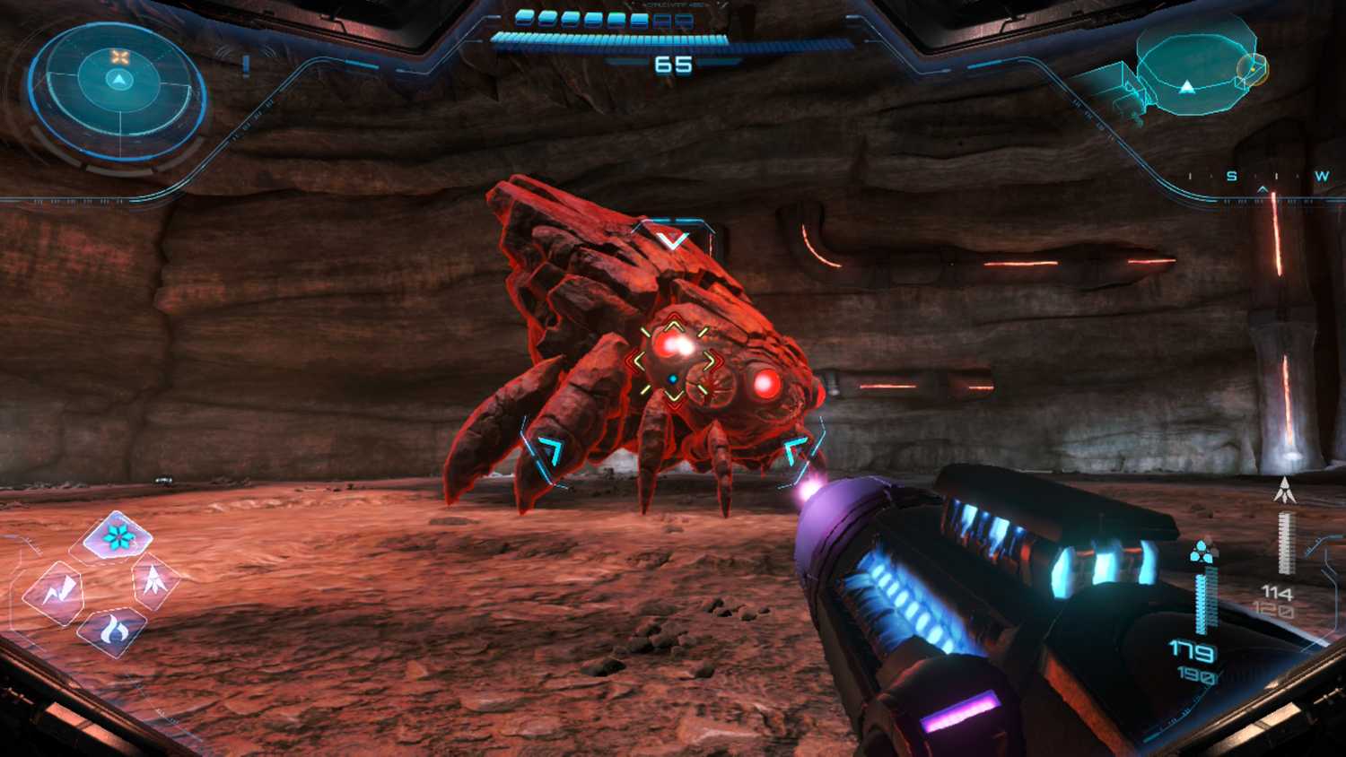 - Lösung: Dieser Abschnitt wird vom Miniboss Varmis bewacht . Greife ihn an, indem du mit Vi-O-La die Kugel an seinem Schwanz triffst. Sobald er betäubt ist, benutze die Morph-Kugel , um in seinen Rachen zu gelangen und eine Power-Bombe in der Nähe der blinkenden Kapsel zu platzieren . Nachdem du Varmis besiegt hast, kannst du den Abschnitt einsammeln.