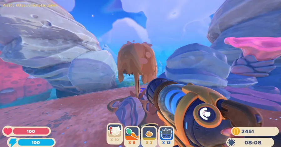 Das erste, was Sie tun müssen, um diese Ressource zu erhalten, ist, den Resource Harvester zu verbessern, und dafür benötigen Sie 450 Newbucks und 10 Cotton Plorts. Wenn Sie das Resource Harvester-Upgrade erhalten, müssen Sie sich in die Starlight Strand-Region wagen und sich hier den Schleimen stellen, die Sie finden. Gehen Sie zu den Schlammgeysiren an den felsigen Rändern der Insel und mit dem Harvester können Sie den Geysir absorbieren, um seidigen Sand zu erhalten.