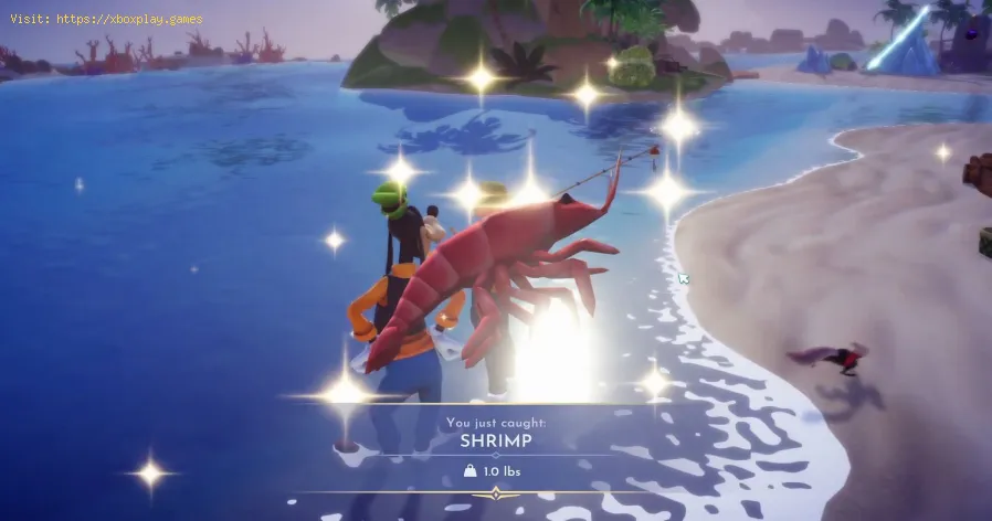 Shrimp can be caught in the shimmering blue waters of the Dazzle Beach biome.