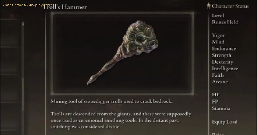 It is a tool that the Stonedigger Trolls will use to break the bedrock, so you have to be strong enough to do it. It also has an additional perk that deals fire damage with each hit, but for this one you'll have to level up your faith stats to upgrade it. It is clear that as a weapon it is worth a lot of money, both for these and other benefits it will offer you, so knowing where to find the Troll’s Hammer location will help you get it.