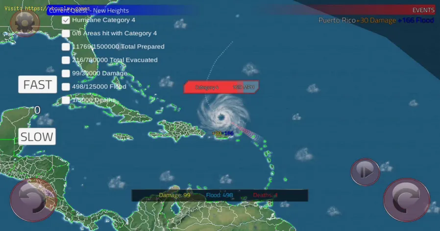 Estaremos en el medio océano al inicio del juego, aquí sepresenta la oportunidad de tener el aumento de la velocidad del viento drenadoen las nubes de vapor como podamos, por ende nos deslizamos en el agua, ahoraen cada situación se requiere de algunos requisitos, buscando alcanzar lacategoría 5 podremos causar inundaciones capaces de destruir 3000 estructuras yafectar a 5 países enteros.