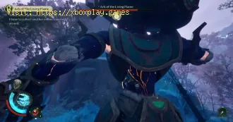 Before Stricken Earth, however, Living Flame would attempt to grab you by the hand and throw you away. So quickly fly underneath him and run away as soon as you see that his hand is going to get to you. You can get the Ember's Servant Strand at the Ark of the Living Flame after defeating him. This strand, when brought to Dahm at the camp, will give Brynn a new ability in summoning a companion-a new skill in Fire.