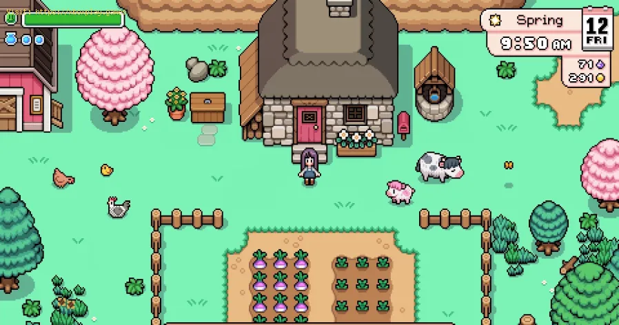 Tags: Farming RPG, Magic spells, Town Rank, Essence currency, NPC heart events, Mines and dungeons, Seasonal events, Fishing g