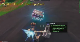 Fortnite Fortbyte #80 Location - Using Bunker Basher PIckaxe to smash Rock at highest Volcano