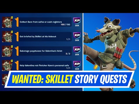 The "Wanted: Skillet" questline is a multi-stage series that guides players through a series of heists and criminal activities. Each stage presents unique challenges, requiring players to utilize their skills and resources to succeed. Prepare for intense encounters with both AI guards and rival players, as the questline unfolds across various locations on the Fortnite map.