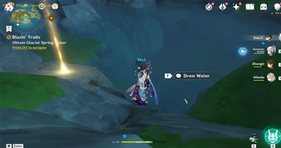 - Quatrième : cela nécessite un personnage Anemo dans notre équipe, que nous utiliserons pour détruire le rocher pour créer un courant ascendant, puis nous atteindrons facilement le sommet de la montagne, ici, nous détruisons le rocher qui sera l'obstacle à l'écoulement. Avec cela, nous verrons le niveau de l'eau monter.