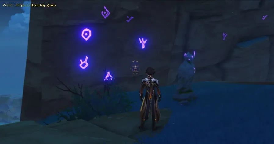Tout d'abord, nous trouverons une statue d'oiseau près d'une branche de Thunder Sakura, lors de l'interaction avec elle, les symboles seront affichés sur le mur du fond, nous remarquerons qu'il y en a 4 qui brillent, ce qui signifie que nous toucherons les murs qu'ils entourent la grotte, en interagissant maintenant avec la branche de Sakura, nous pouvons prendre un electrograna qui nous aidera dans la grotte, au moment où nous plaçons un symbole sur le mur qui correspond à ceux qui brillent, nous l'appuyons pour qu'il brille de la même manière, en ligne droite, ceux-ci sont alignés, nous allons donc suivre un motif composé d'une fourchette, d'un seelie, d'un triangle et d'un cercle, en les touchant dans n'importe quel ordre, après quoi un coffre apparaîtra pour terminer le puzzle.