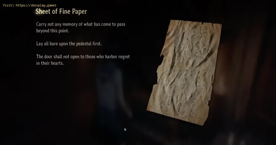 Comment déclencher: La Feuille de Papier Fin n°1 ne sera pas disponible immédiatement. Vous devez d'abord interagir avec les éléments du puzzle et progresser significativement, voire résoudre entièrement, le Puzzle de Lumière . Une fois l'environnement correctement manipulé, retournez à l'autel. Le document sera alors disponible.