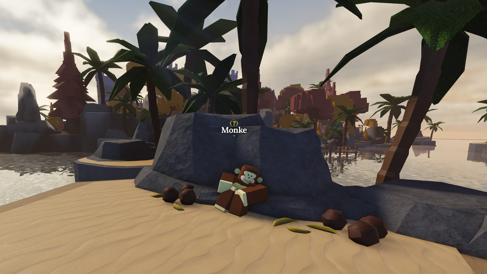 - Île du Singe et quêtes de Bananite: Dès votre apparition, nagez jusqu'à l'île la plus éloignée dans l'océan, derrière vous. Vous y rencontrerez le PNJ Singe , qui propose des quêtes répétables nécessitant 1, 5 ou 30 Bananites.Ces quêtes sont idéales pour gagner régulièrement de l'XP et de l'or,quel que soit votre niveau.
