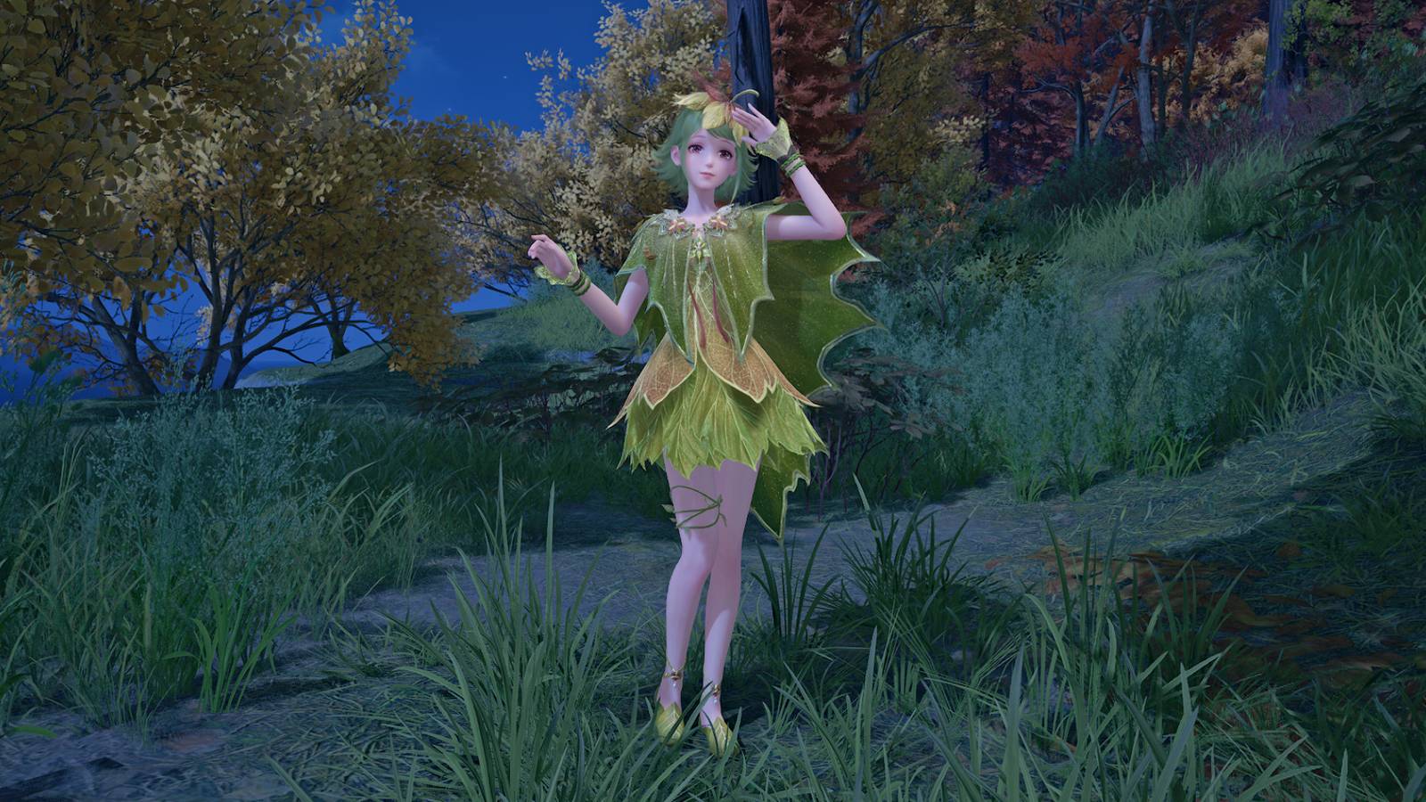 L'outfit "Suono di Foglie" è tingibile? Sì! Essendo un outfit a 3 stelle, non ha stadi di evoluzione,ma la sua intera palette di colori può essere personalizzata utilizzando il sistema di tintura del gioco.