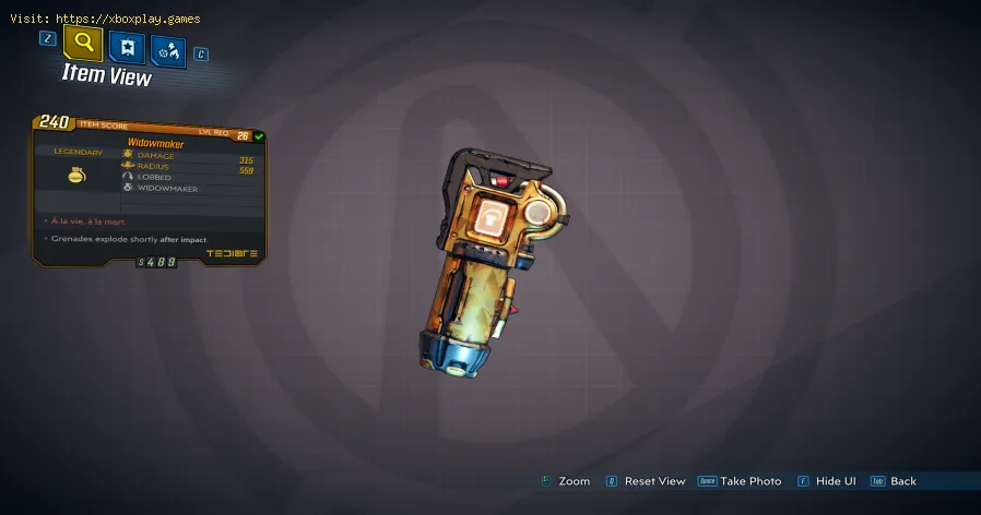 Felizmente, esta arma é sem dúvida a mais poderosa de todas as armas que você pode obter em Borderlands 3; as estatísticas dos danos que causa são muito altas e do raio que cobre, seu poder está na radiação que produz, com este poderoso arma, você pode destruir tudo em seu caminho, incluindo grandes chefes em um único instante, com apenas dois lançamentos; de repente, pode haver alterações nessa arma, pois não seria muito significativo para o jogo eliminar os inimigos com tanta facilidade.