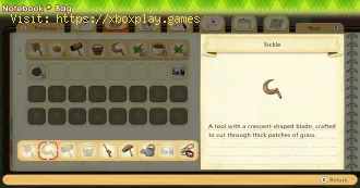 - The Sickle: on our first day it will be given to us, with which we can cut and harvest grass.