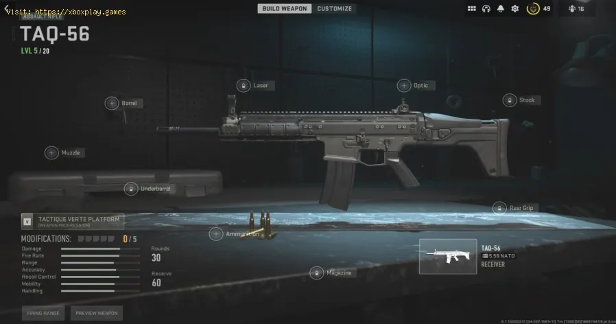 The 5.56 High Velocity ammunition is the perfect choice for the TAQ-56 loadout. This ammo maximizes bullet velocity and helps you hit targets with greater accuracy.